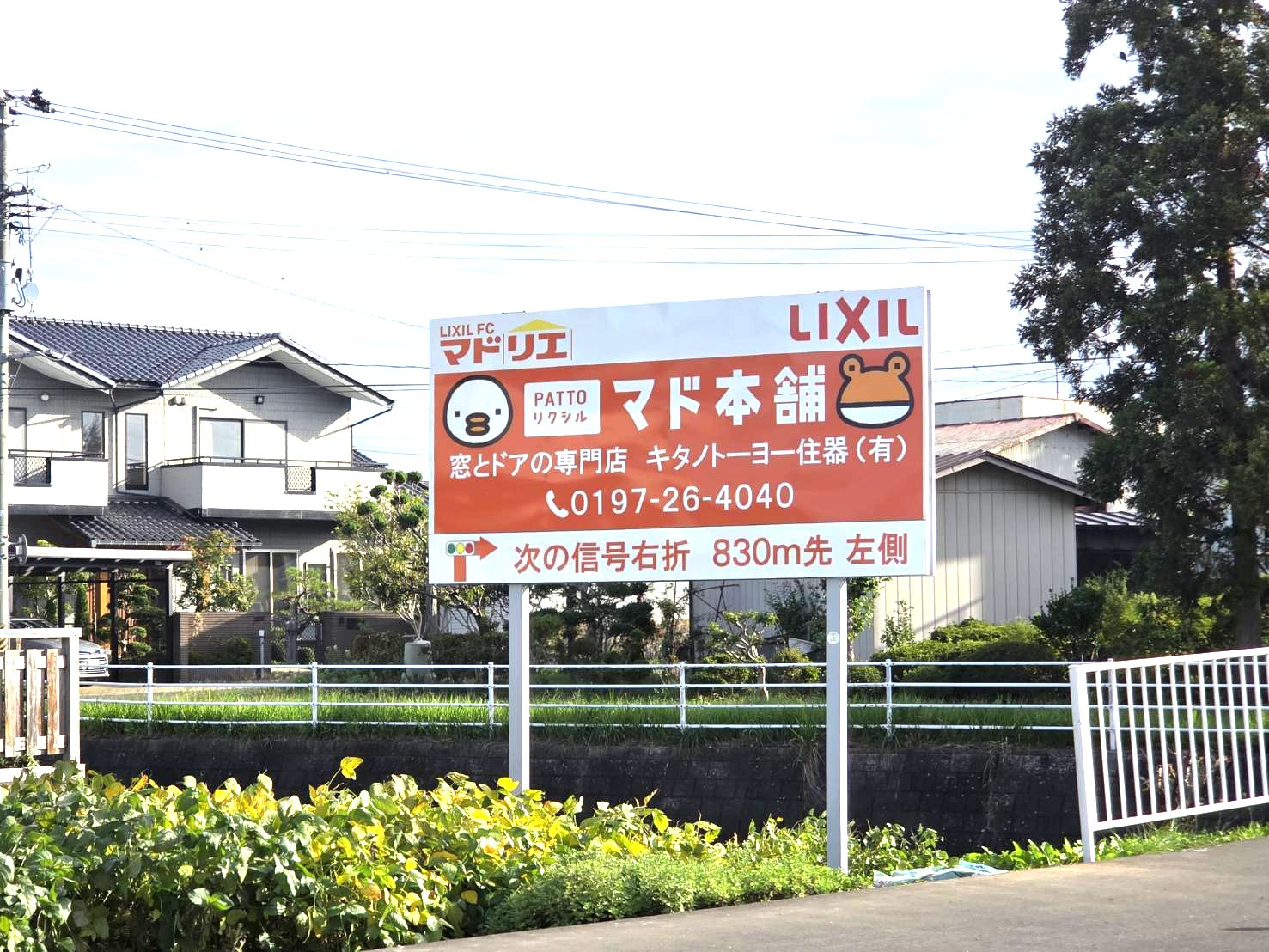 看板には、弊社が提供する住まいのリフォームや不動産情報を分かりやすく掲載し、通勤やお買い物の途中に気軽に目にしていただけるようになっています。